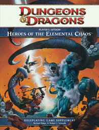 Dungeons & Dragons Player's Option: Heroes of the Elemental Chaos Heroes of the Elemental Chaos is the latest Player's Option supplement for Dungeons & Dragons written by Richard Baker and Robert J. Schwalb and published…